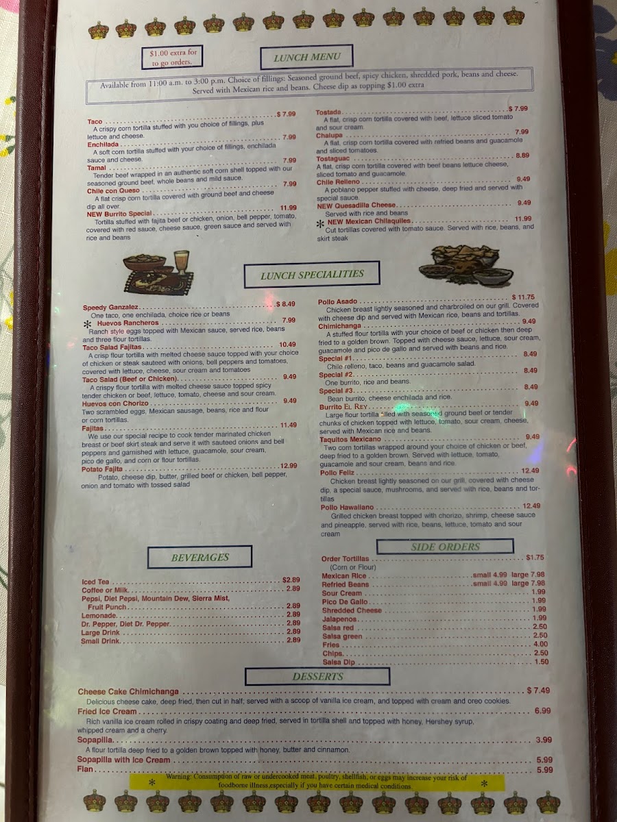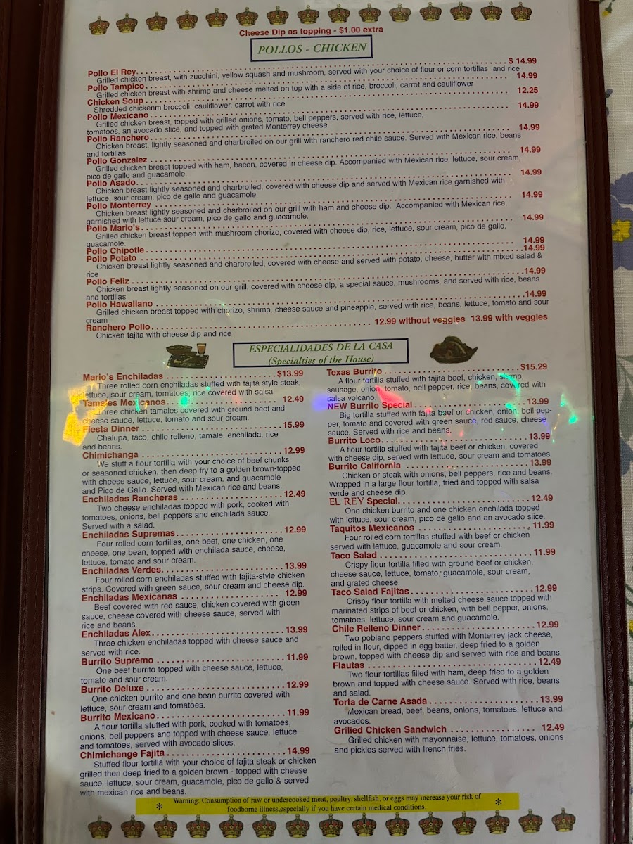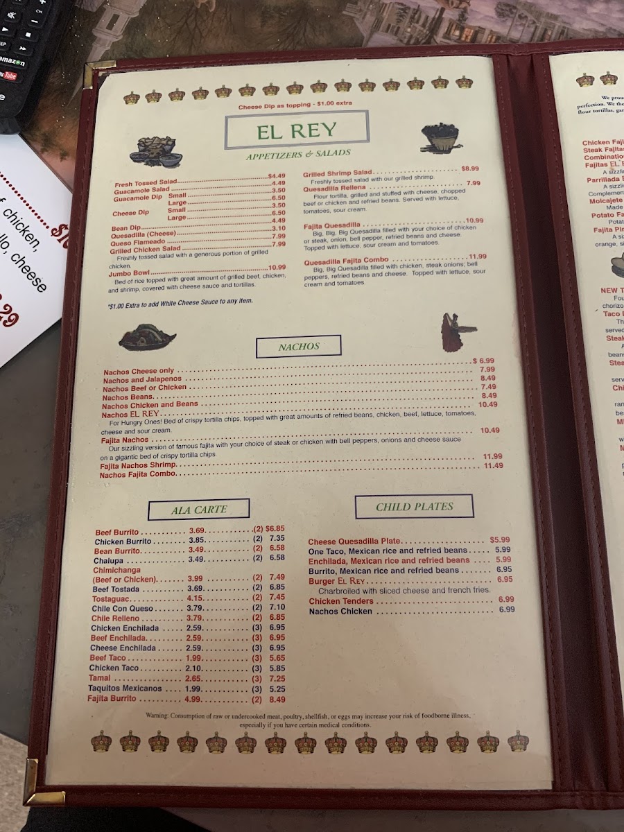 El Rey Mexican Restaurant Menu
